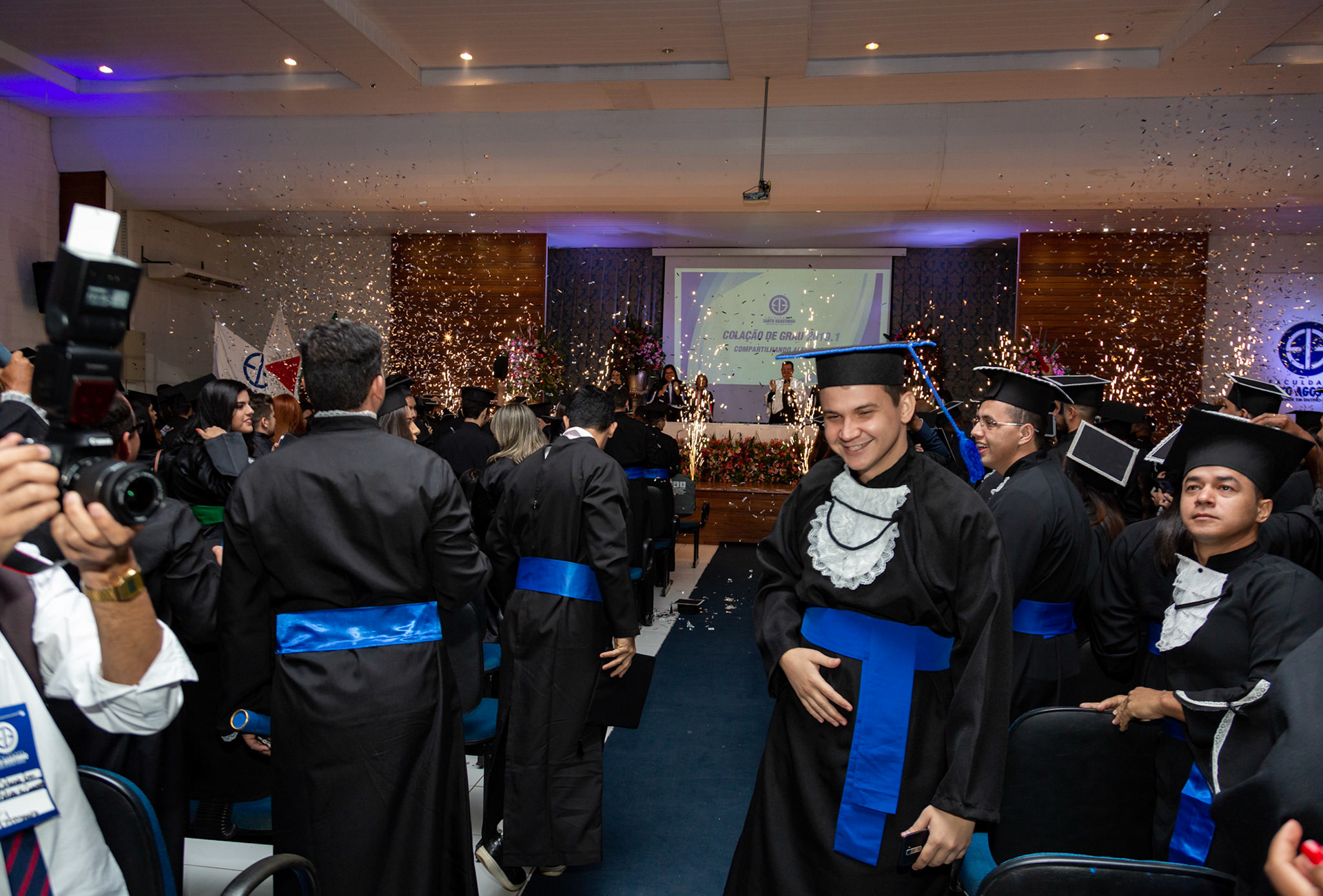 O dia tão sonhado chegou! Dia de formatura. Junta a galera, faz foto individual, faz foto em grupo fazendo sarrada no ar, faz foto com professor, faz foto chorando. É foto que não acaba mais :)